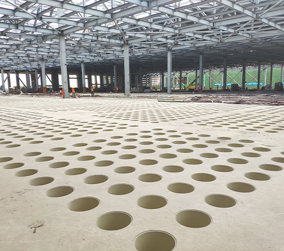 圓形華夫板的生產(chǎn)工藝具有以下優(yōu)勢(shì):1.保證成孔準(zhǔn)確與樓板平整度采用的生產(chǎn)工藝,使用標(biāo)準(zhǔn)模板...
